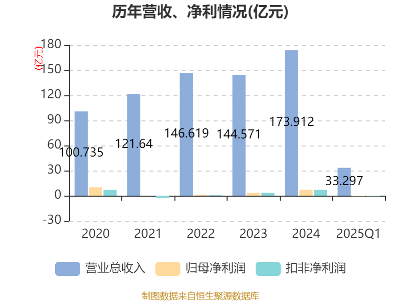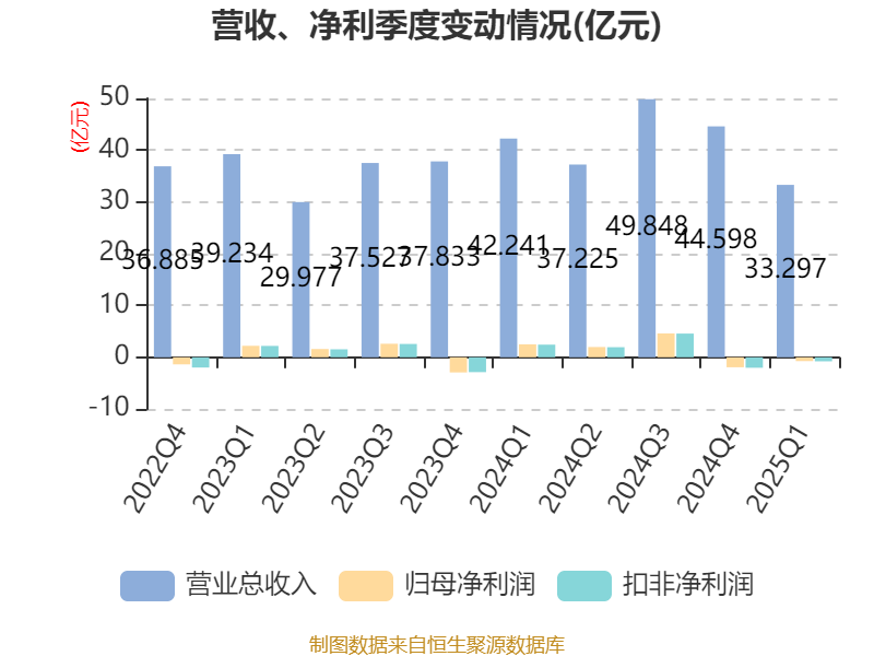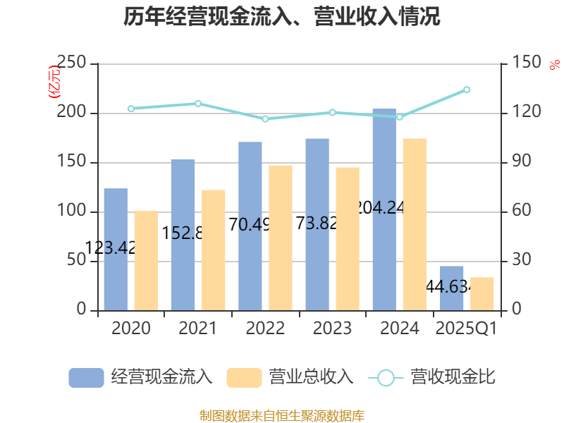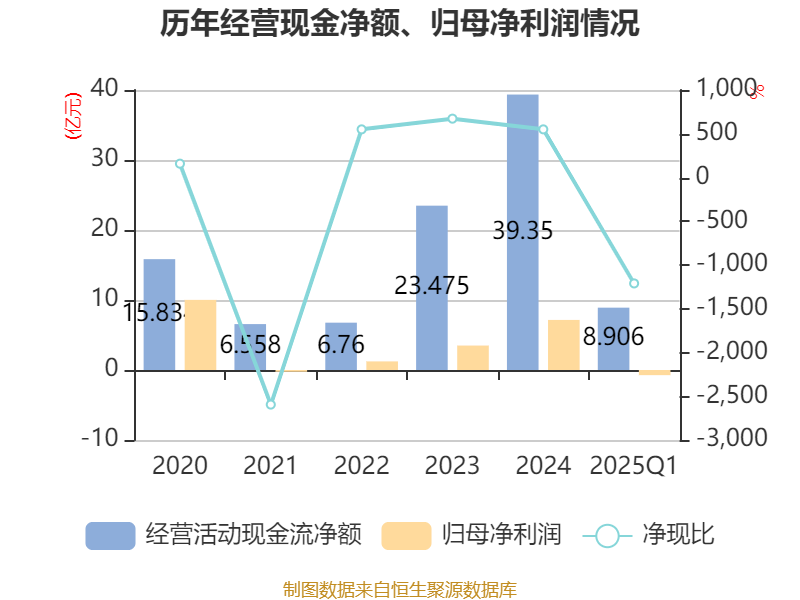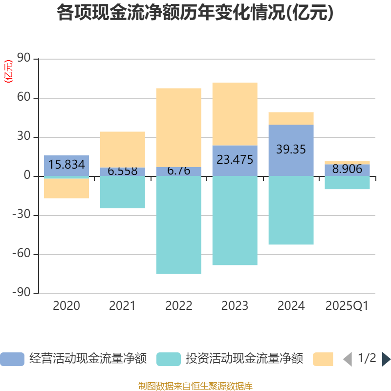 截至2025年一季度末,公司经营活动现金流净额为8.91亿元,同比下降8.15%;筹资活动现金流净额2.53亿元,同比增加4.27亿元;投资活动现金流净额-10.18亿元,上年同期为-11.03亿元。