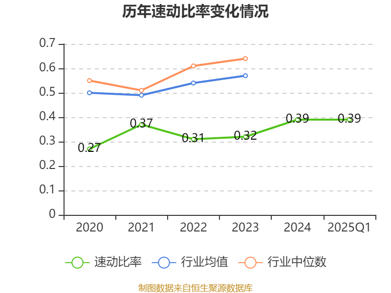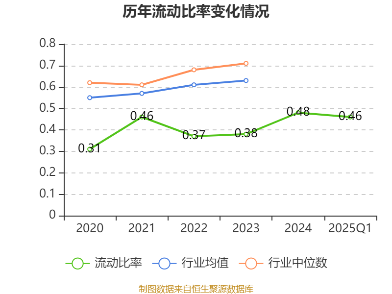 2025年第一季度,公司流动比率为0.46,速动比率为0.39。