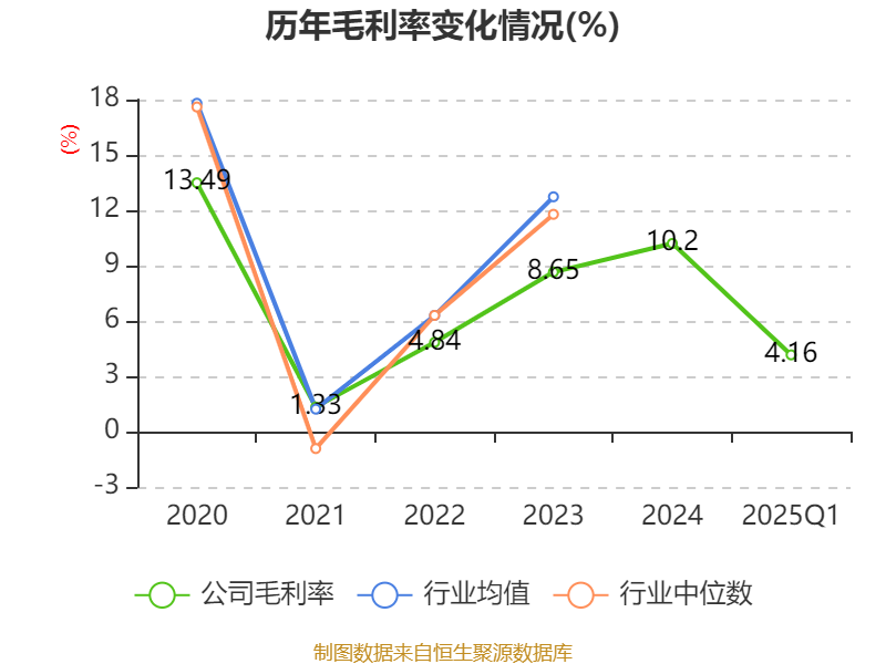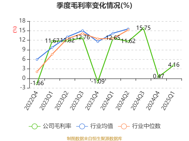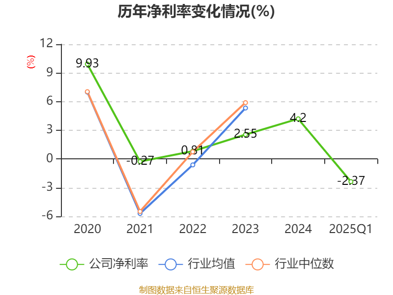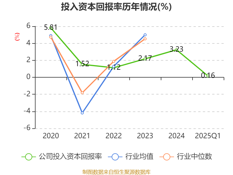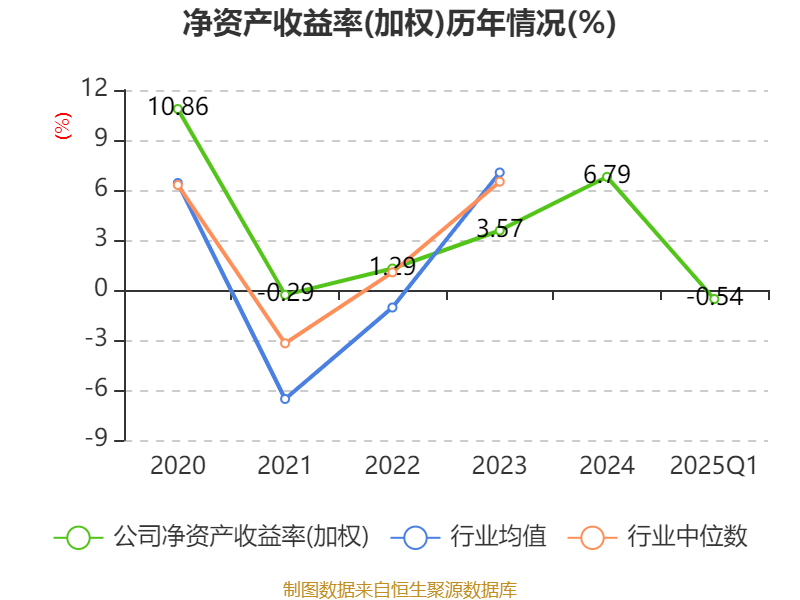 盈利能力方面, 2025年一季度公司加权平均净资产收益率为-0.54%,同比下降3.02个百分点。公司2025年第一季度投入资本回报率为0.16%,较上年同期下降0.87个百分点。