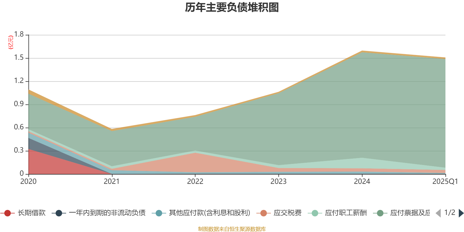 负债重大变化方面,截至2025年一季度末,公司应付职工薪酬较上年末减少77.89%,占公司总资产比重下降2.01个百分点;应付票据及应付账款较上年末增加2.99%,占公司总资产比重上升0.42个百分点;其他应付款(含利息和股利)较上年末减少63.21%,占公司总资产比重下降0.34个百分点;应交税费较上年末减少7.56%,占公司总资产比重下降0.07个百分点。