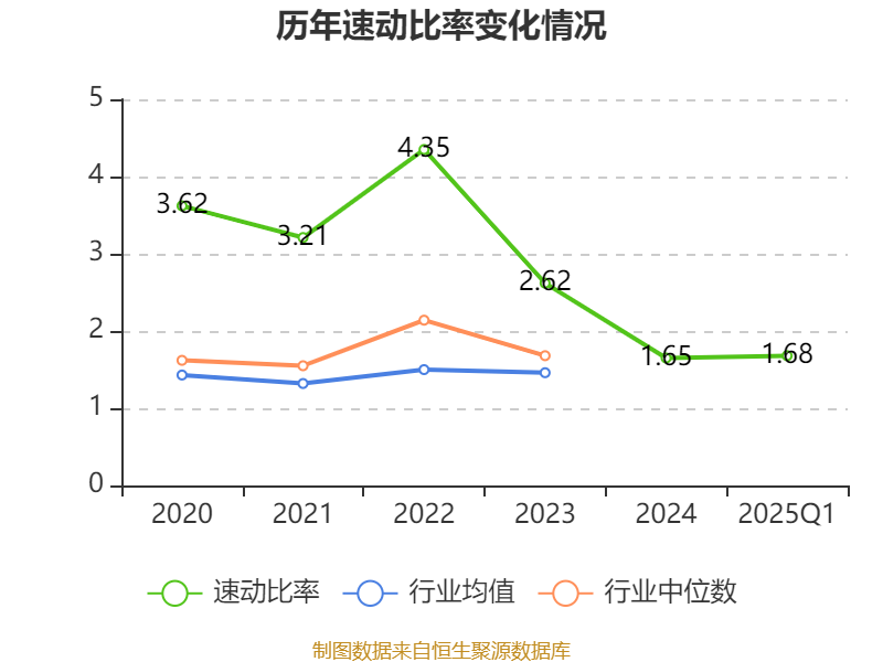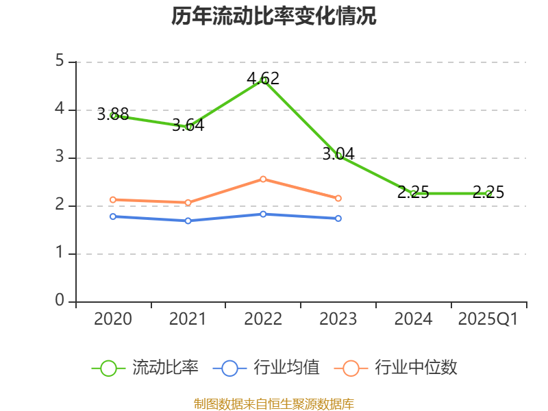 2025年第一季度,公司流动比率为2.25,速动比率为1.68。