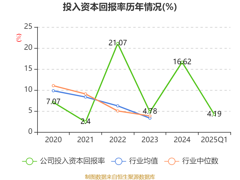 盈利能力方面, 2025年一季度公司加权平均净资产收益率为4.21%,同比上升1.41个百分点。公司2025年第一季度投入资本回报率为4.19%,较上年同期上升1.31个百分点。