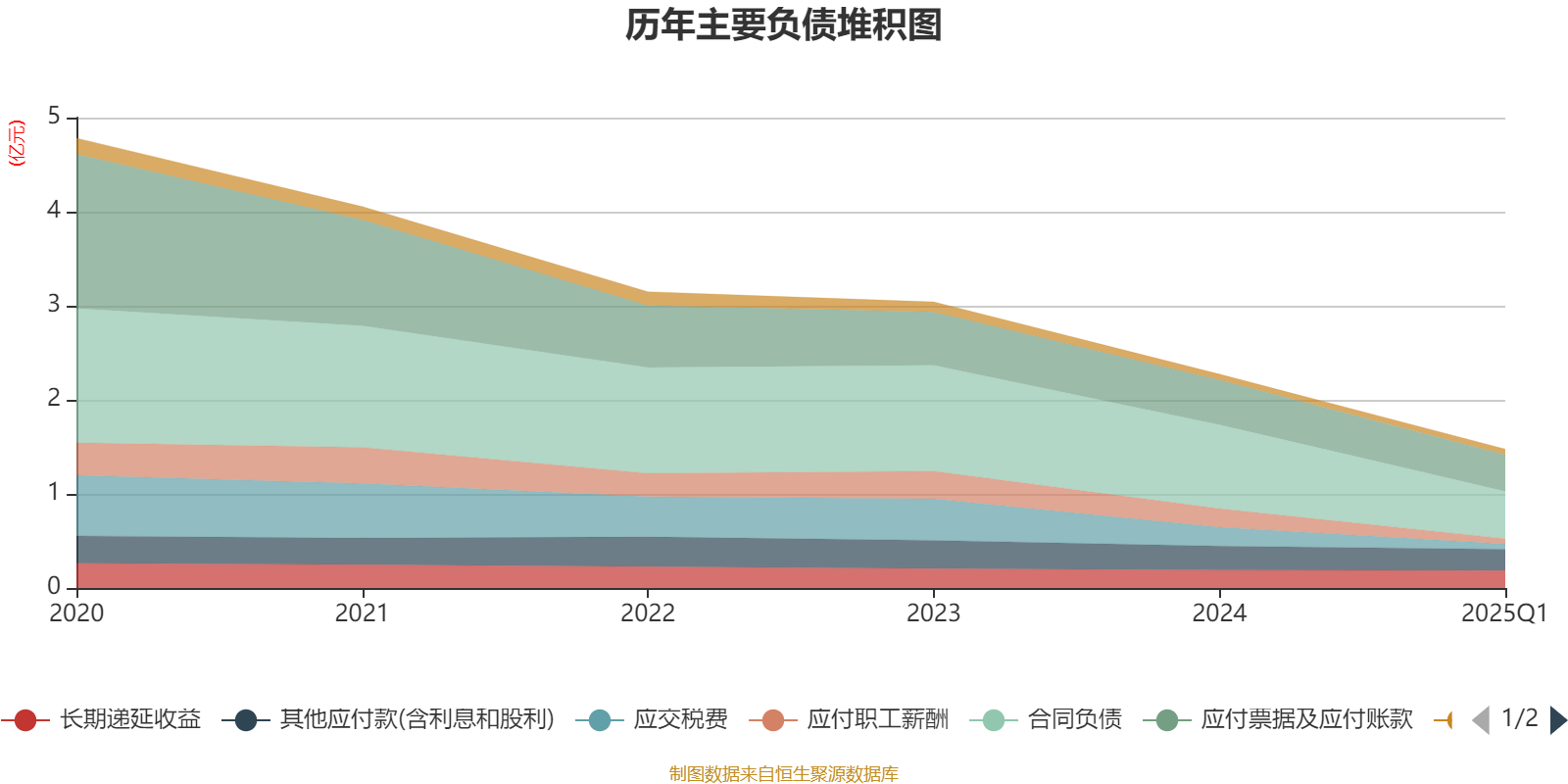 负债重大变化方面,截至2025年一季度末,公司合同负债较上年末减少43.5%,占公司总资产比重下降1.95个百分点;应交税费较上年末减少72.45%,占公司总资产比重下降0.77个百分点;应付职工薪酬较上年末减少71.71%,占公司总资产比重下降0.74个百分点;应付票据及应付账款较上年末减少18.08%,占公司总资产比重下降0.37个百分点。
