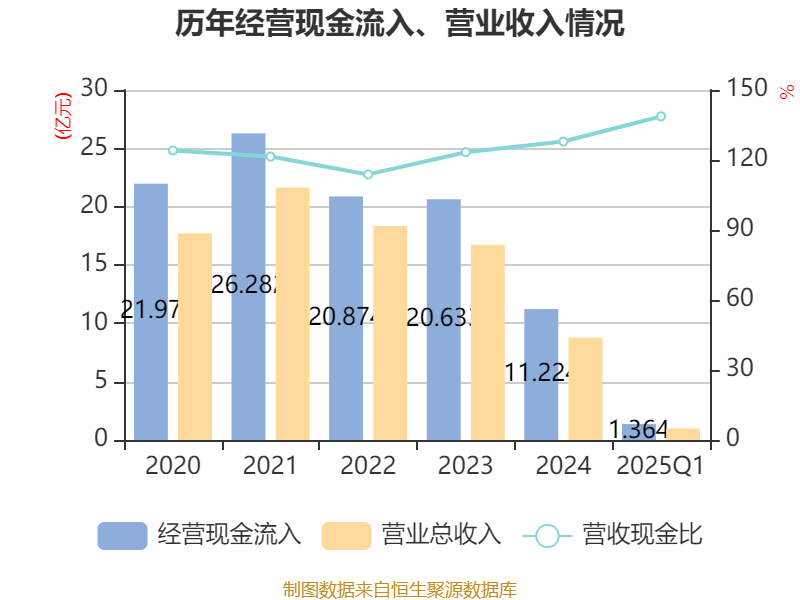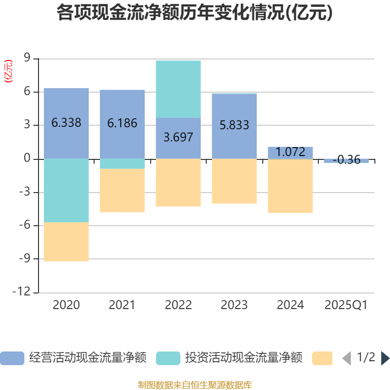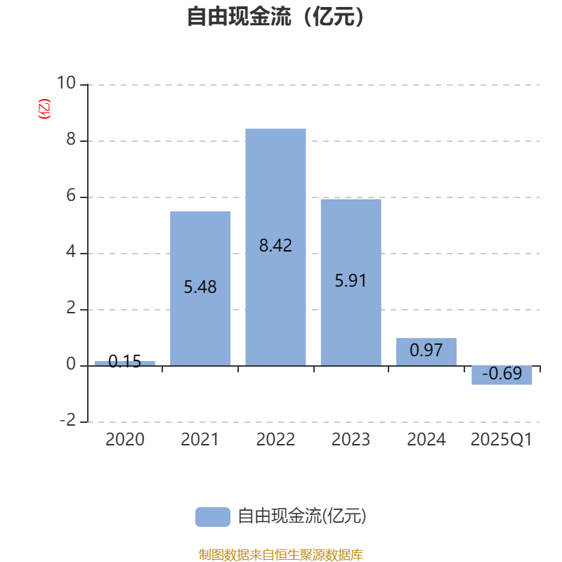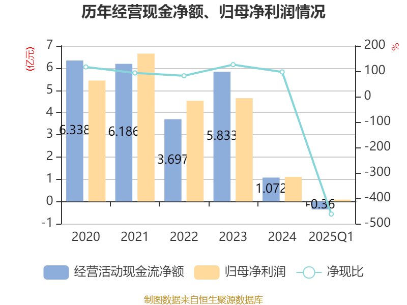 截至2025年一季度末,公司经营活动现金流净额为-3601.48万元,同比减少5124.29万元;筹资活动现金流净额-44.94万元,同比减少444.94万元;投资活动现金流净额-219.22万元,上年同期为-47.26万元。