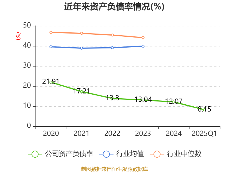 盈利能力方面, 2025年一季度公司加权平均净资产收益率为0.47%,同比下降3.26个百分点。公司2025年第一季度投入资本回报率为0.41%,较上年同期下降2.93个百分点。