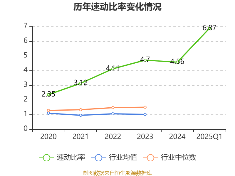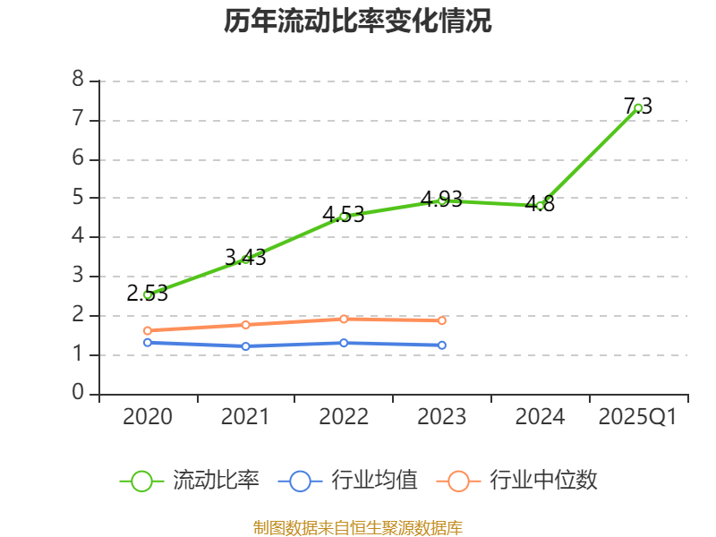 2025年第一季度,公司流动比率为7.3,速动比率为6.87。