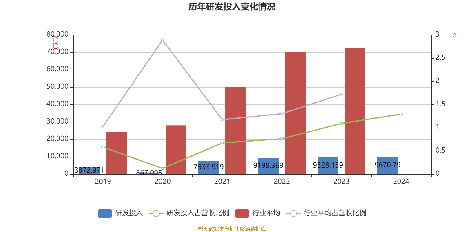 2024年全年,公司研发投入金额为9670.79万元,同比增长1.5%;研发投入占营业收入比例为1.29%,相比上年同期上升0.2个百分点。此外,公司全年研发投入资本化率为0%。