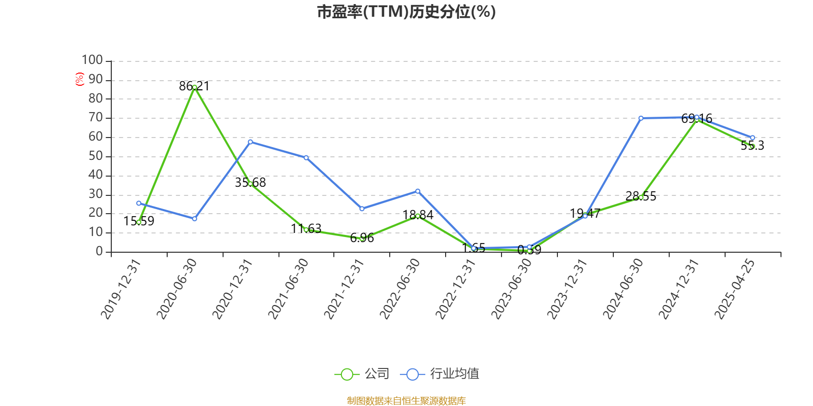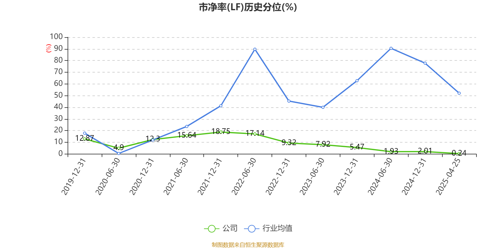 市盈率、市净率为负时,不显示当期分位数,会导致折线图中断。