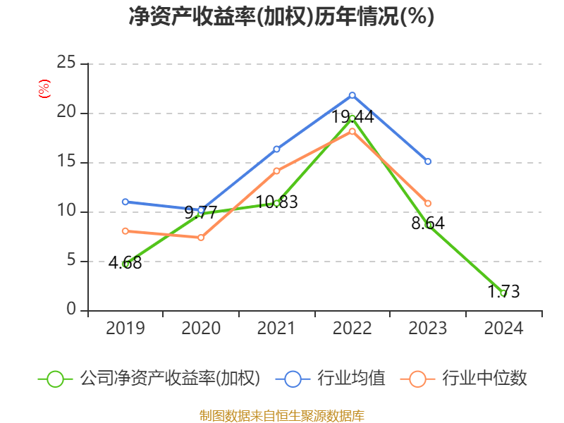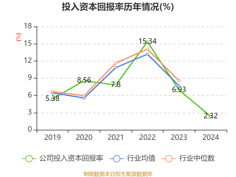 数据显示,2024年公司加权平均净资产收益率为1.73%,较上年同期下降6.91个百分点。公司2024年投入资本回报率为2.32%,较上年同期下降4.61个百分点。