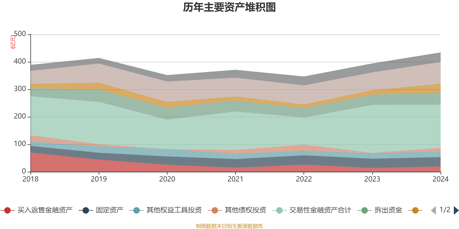 资产重大变化方面,截至2024年末,公司交易性金融资产合计较上年末减少9.9%,占公司总资产比重下降8.05个百分点;结算备付金较上年末增加96.69%,占公司总资产比重上升3.25个百分点;其他债权投资较上年末增加789.99%,占公司总资产比重上升2.6个百分点;货币资金较上年末增加23.2%,占公司总资产比重上升1.93个百分点。