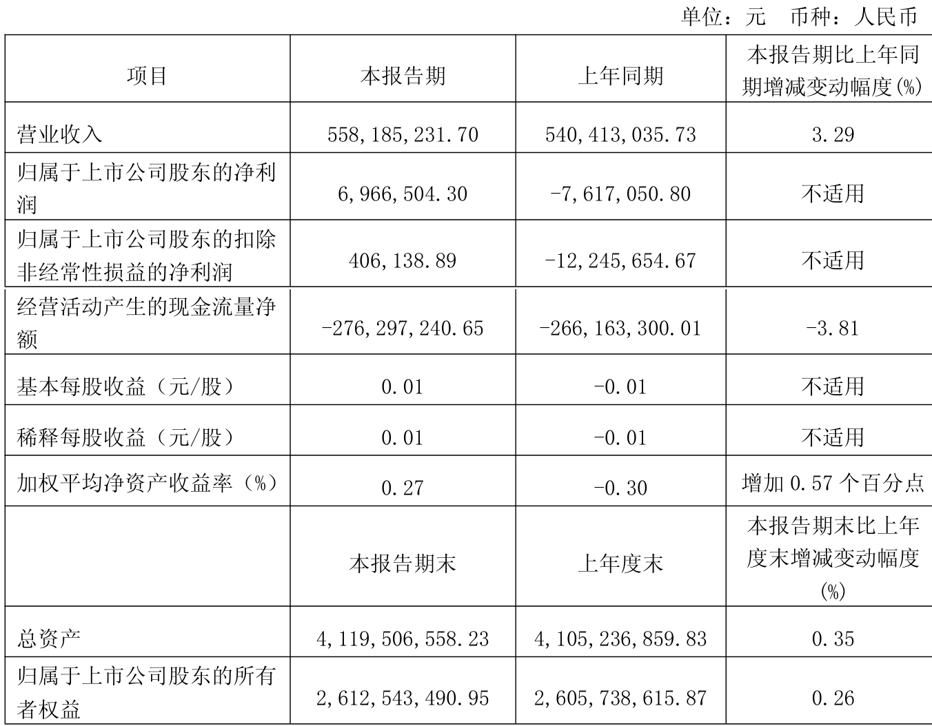 中证智能财讯出版传媒(601999)4月26日披露2025年第一季度报告。公司实现营业总收入5.58亿元,同比增长3.29%;归母净利润696.65万元,同比扭亏;扣非净利润40.61万元,同比扭亏;经营活动产生的现金流量净额为-2.76亿元,上年同期为-2.66亿元;报告期内,出版传媒基本每股收益为0.01元,加权平均净资产收益率为0.27%。