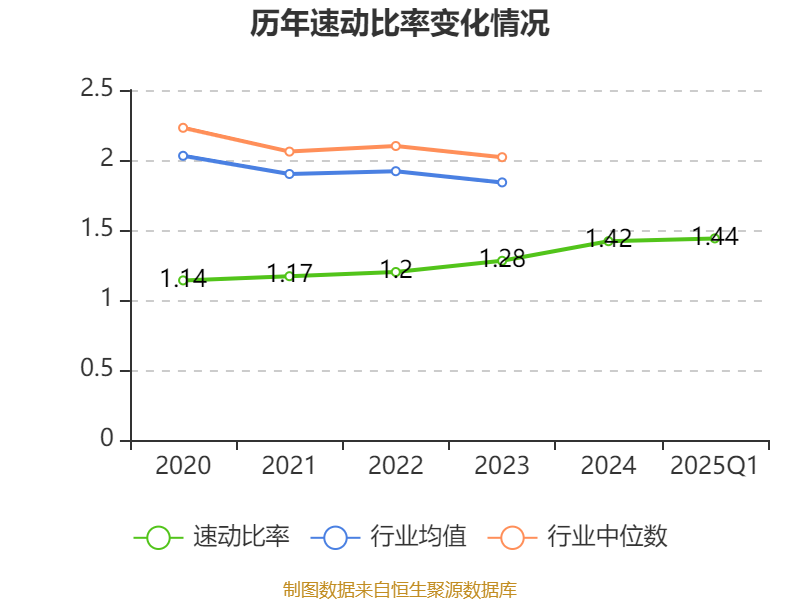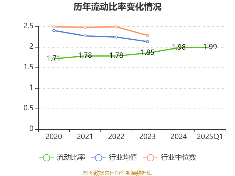 2025年第一季度,公司流动比率为1.99,速动比率为1.44。