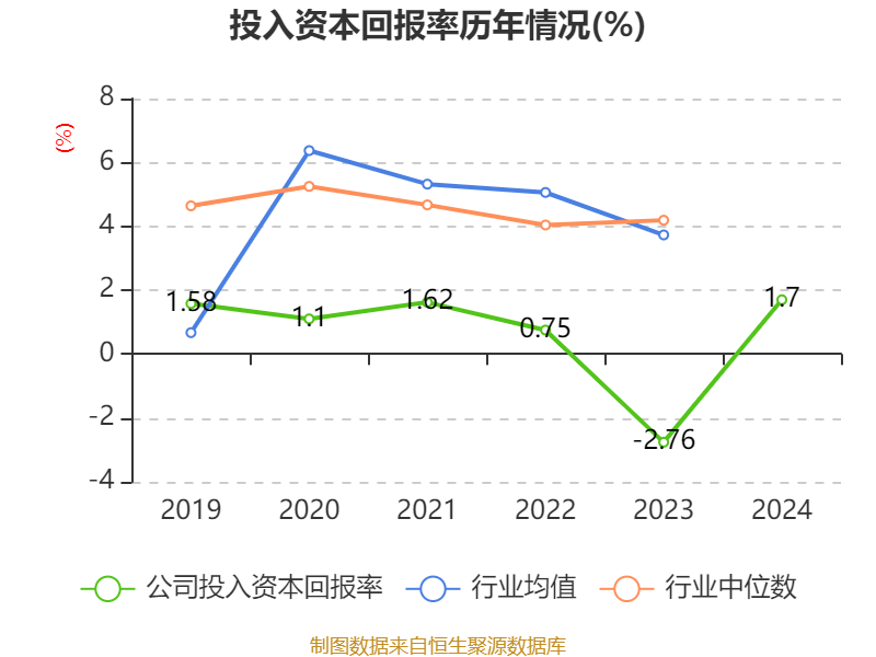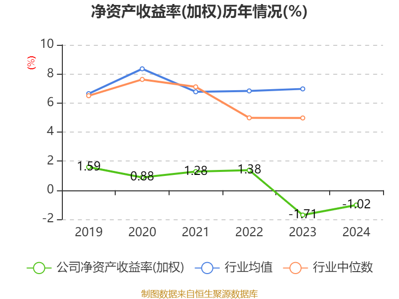 数据显示,2024年公司加权平均净资产收益率为-1.02%,较上年同期上升0.69个百分点。公司2024年投入资本回报率为1.7%,较上年同期上升4.46个百分点。