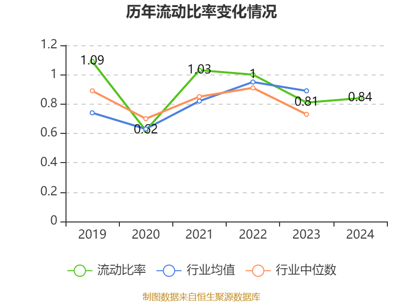 2024年,公司流动比率为0.84,速动比率为0.82。