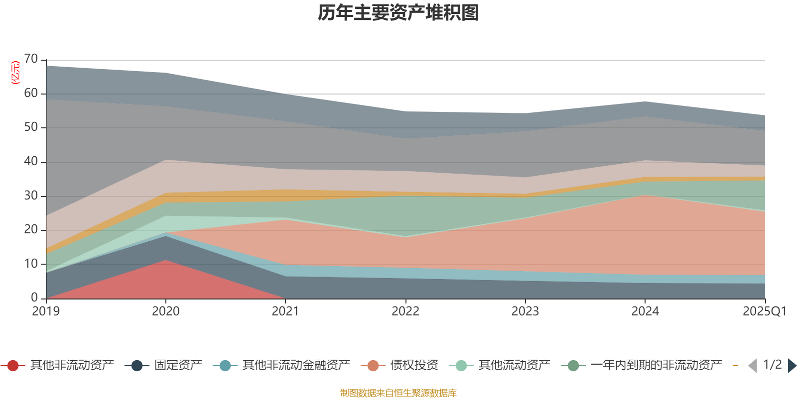 资产重大变化方面,截至2025年一季度末,公司一年内到期的非流动资产较上年末增加132.56%,占公司总资产比重上升9.82个百分点;债权投资较上年末减少20.51%,占公司总资产比重下降5.85个百分点;货币资金较上年末减少21.4%,占公司总资产比重下降3.43个百分点;应收票据及应收账款较上年末减少32.18%,占公司总资产比重下降2.27个百分点。