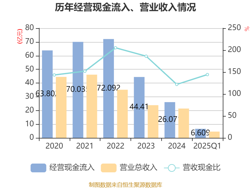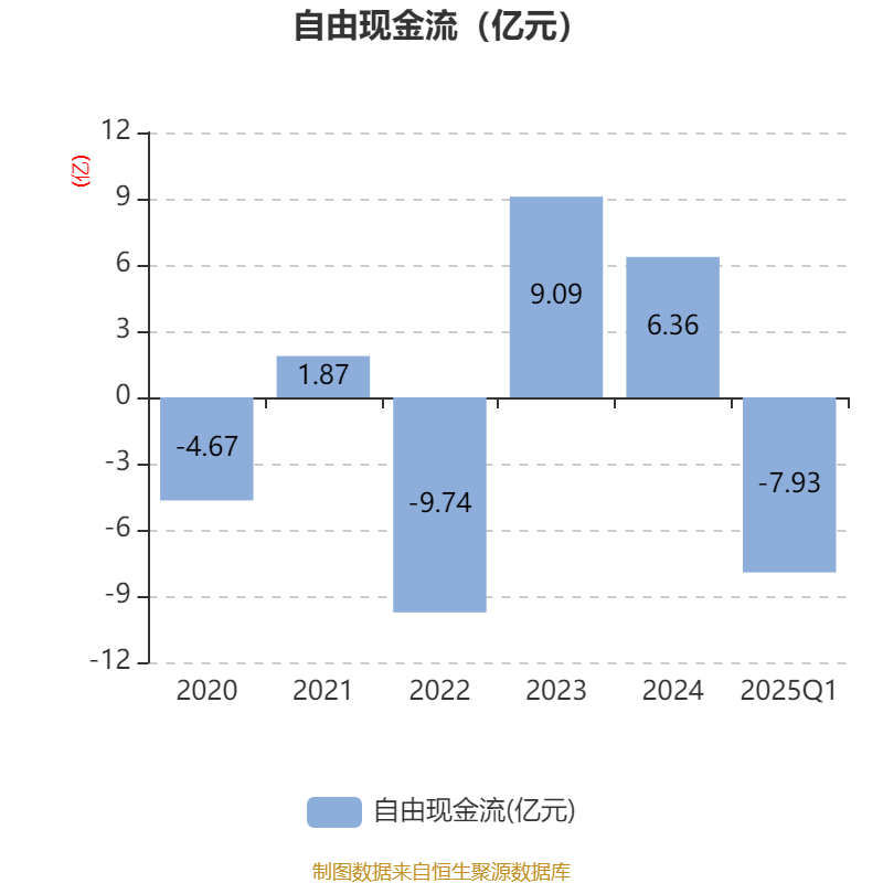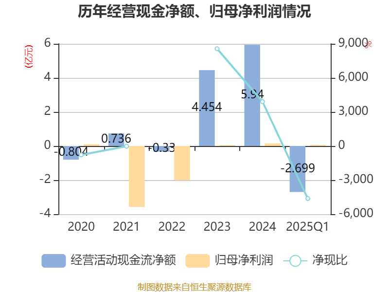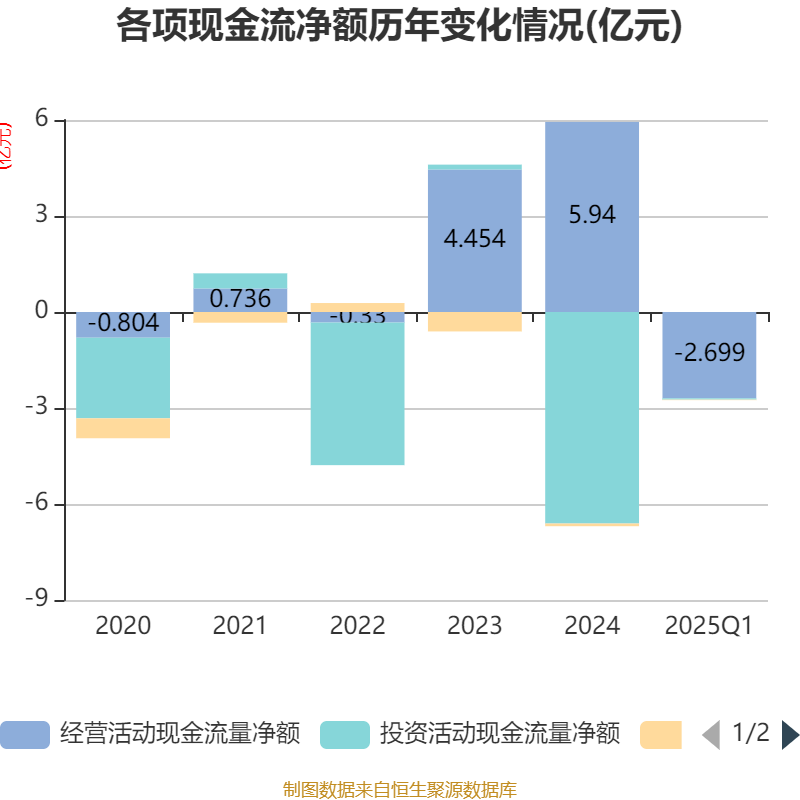 截至2025年一季度末,公司经营活动现金流净额为-2.7亿元,同比减少3.87亿元;筹资活动现金流净额-137.17万元,同比减少40.38万元;投资活动现金流净额-377.93万元,上年同期为2.89亿元。