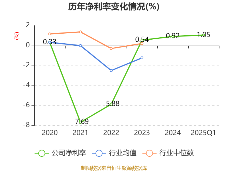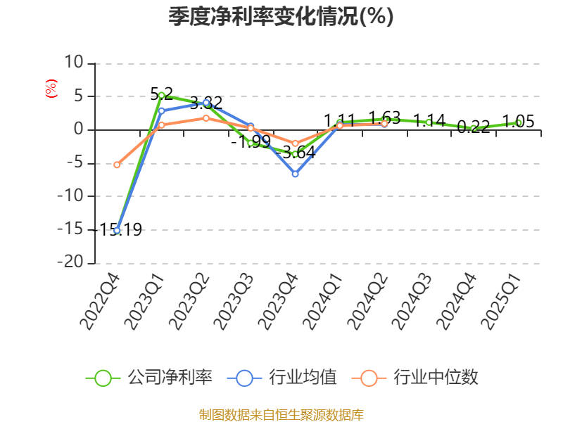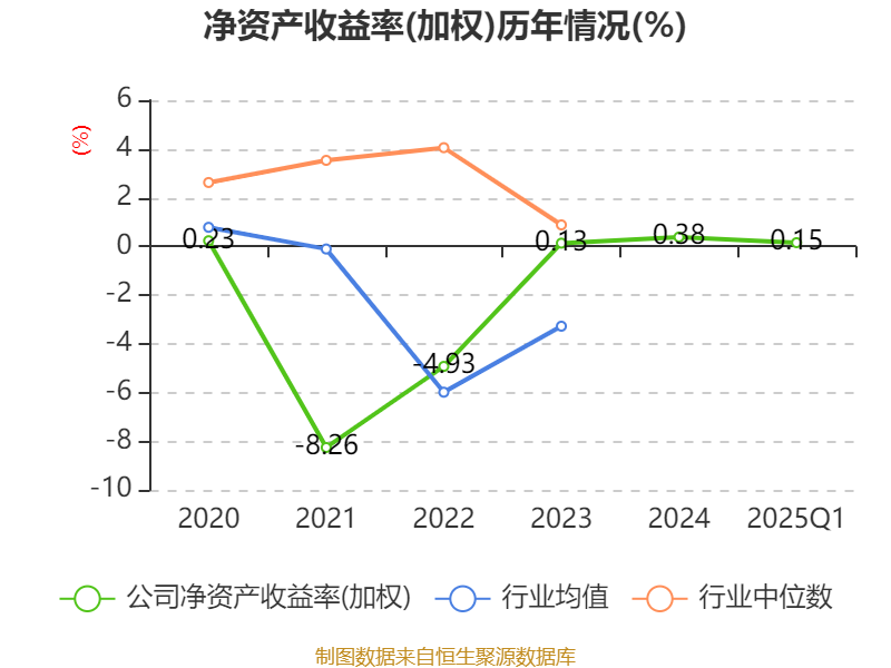 盈利能力方面, 2025年一季度公司加权平均净资产收益率为0.15%,同比上升0.02个百分点。公司2025年第一季度投入资本回报率为-0.07%,较上年同期上升0.04个百分点。
