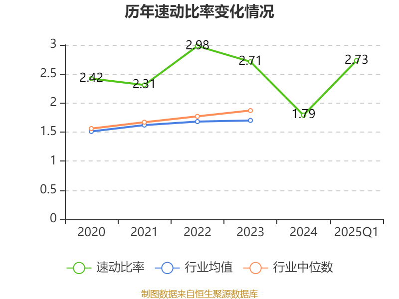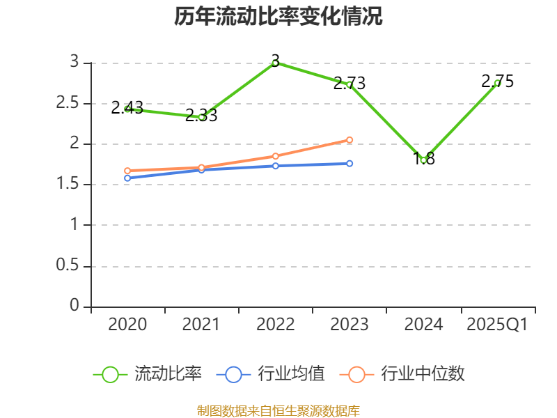 2025年第一季度,公司流动比率为2.75,速动比率为2.73。