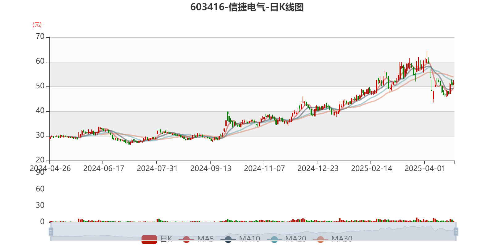 以4月25日收盘价计算,信捷电气目前市盈率(TTM)约为31.41倍,市净率(LF)约3.08倍,市销率(TTM)约4.11倍。