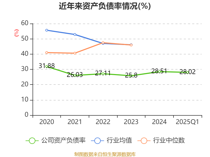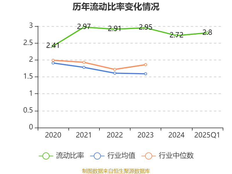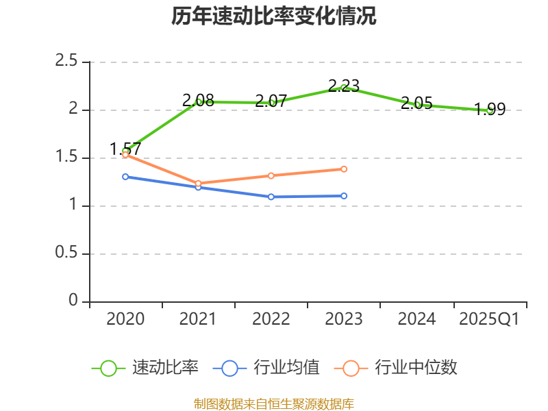 2025年第一季度,公司流动比率为2.8,速动比率为1.99。