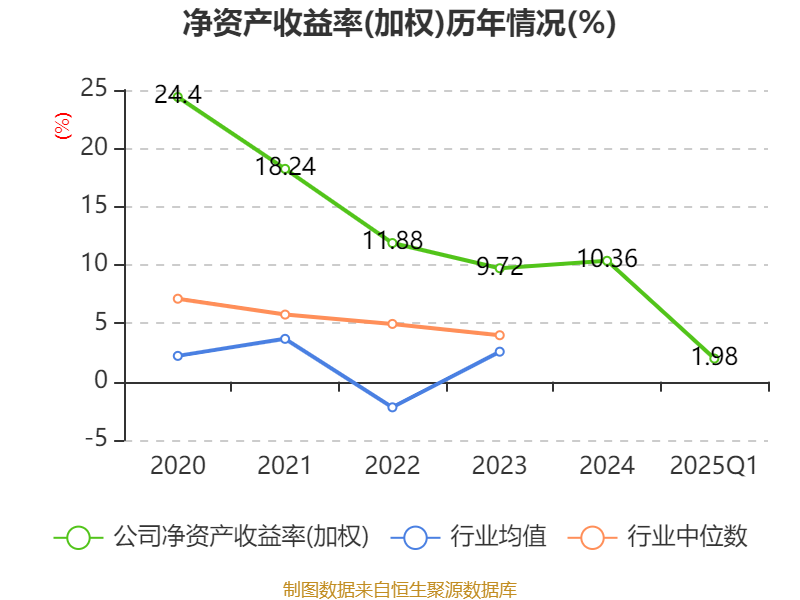 盈利能力方面, 2025年一季度公司加权平均净资产收益率为1.98%,同比下降0.08个百分点。公司2025年第一季度投入资本回报率为1.91%,较上年同期下降0.01个百分点。