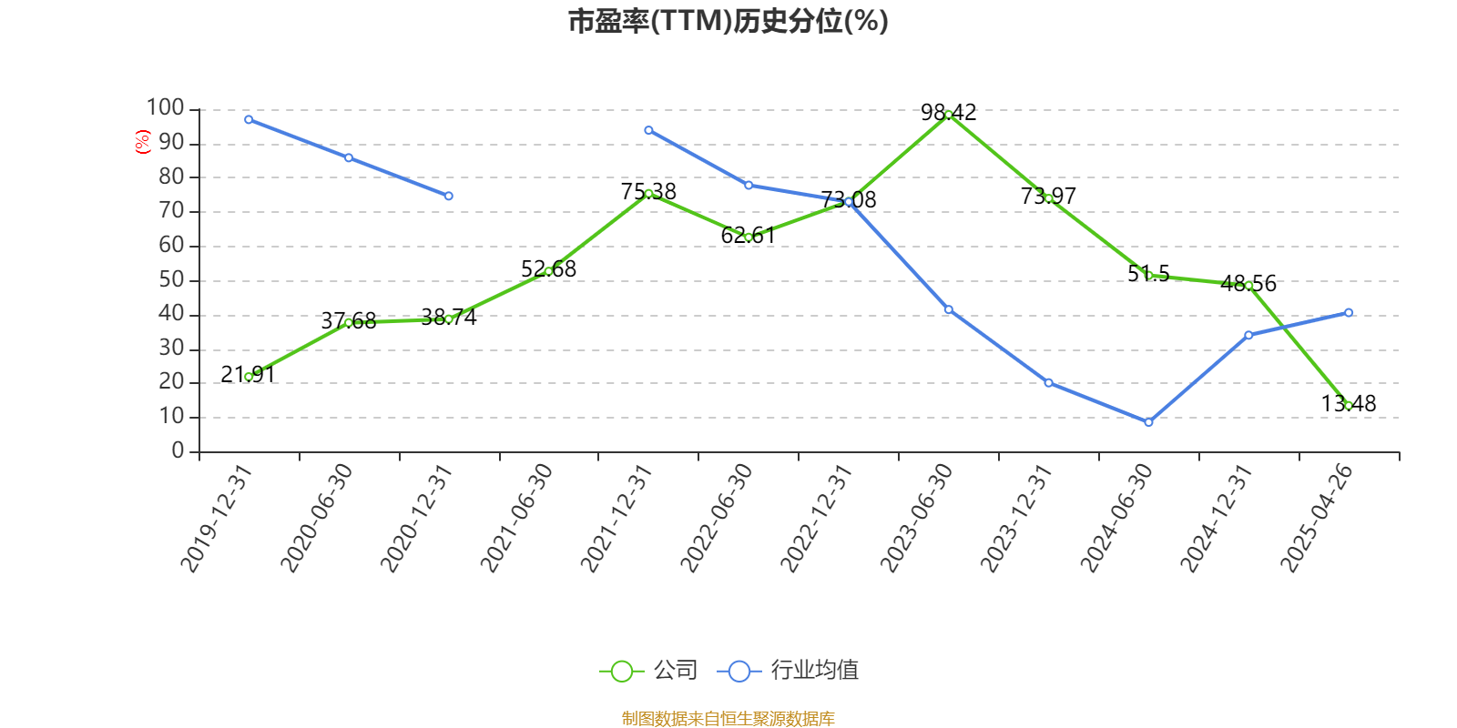 市盈率、市净率为负时,不显示当期分位数,会导致折线图中断。