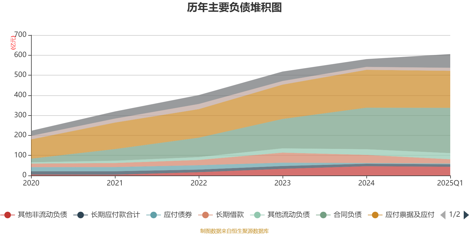 负债重大变化方面,截至2025年一季度末,公司长期借款较上年末减少47.59%,占公司总资产比重下降1.83个百分点;一年内到期的非流动负债较上年末增加213.59%,占公司总资产比重上升1.72个百分点;合同负债较上年末增加8.78%,占公司总资产比重上升1.06个百分点;应付票据及应付账款较上年末减少2.17%,占公司总资产比重下降0.88个百分点。
