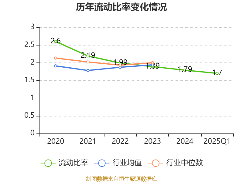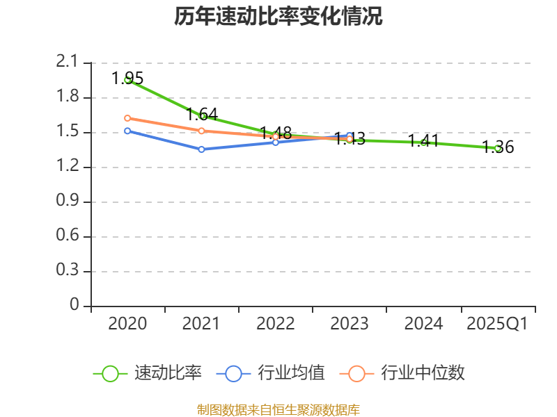 2025年第一季度,公司流动比率为1.7,速动比率为1.36。