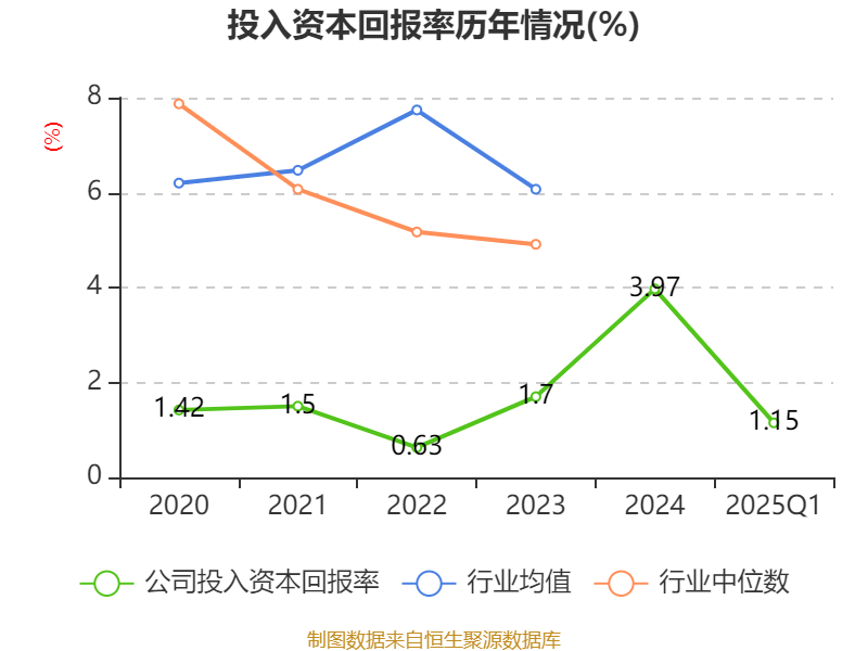盈利能力方面, 2025年一季度公司加权平均净资产收益率为1%,同比上升0.76个百分点。公司2025年第一季度投入资本回报率为1.15%,较上年同期上升0.95个百分点。