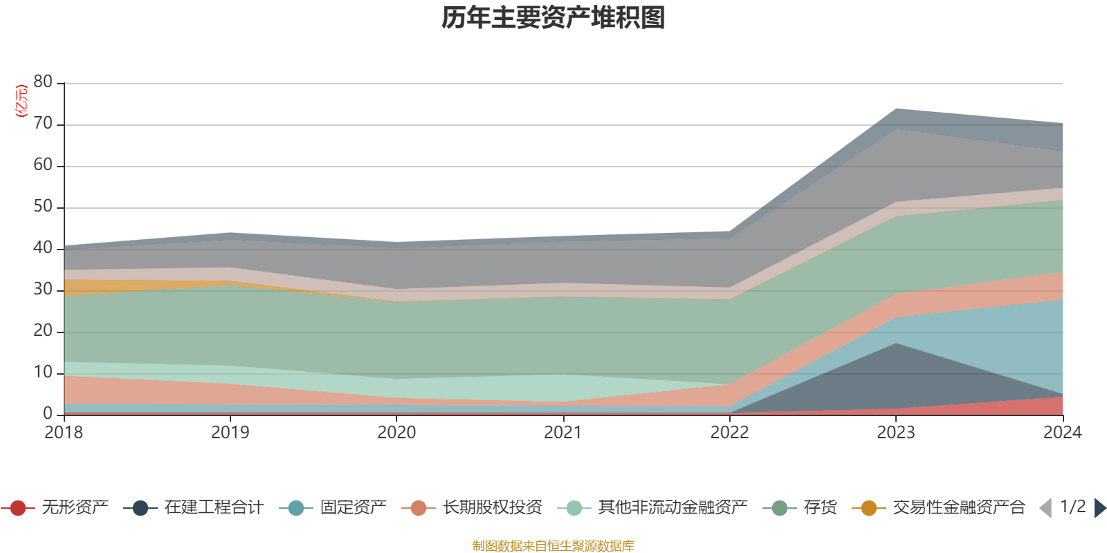 资产重大变化方面,截至2024年末,公司固定资产较上年末增加263.81%,占公司总资产比重上升23.88个百分点;在建工程合计较上年末减少95.75%,占公司总资产比重下降20.43个百分点;货币资金较上年末减少49.82%,占公司总资产比重下降11.23个百分点;无形资产较上年末增加195.4%,占公司总资产比重上升4.19个百分点。