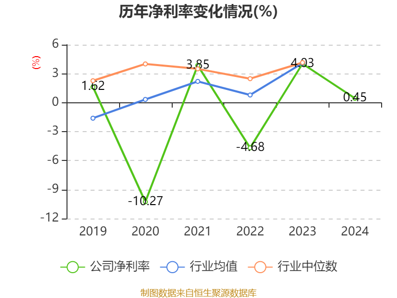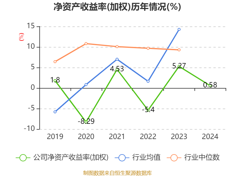 数据显示,2024年公司加权平均净资产收益率为0.58%,较上年同期下降4.69个百分点。公司2024年投入资本回报率为-1.18%,较上年同期下降5.49个百分点。