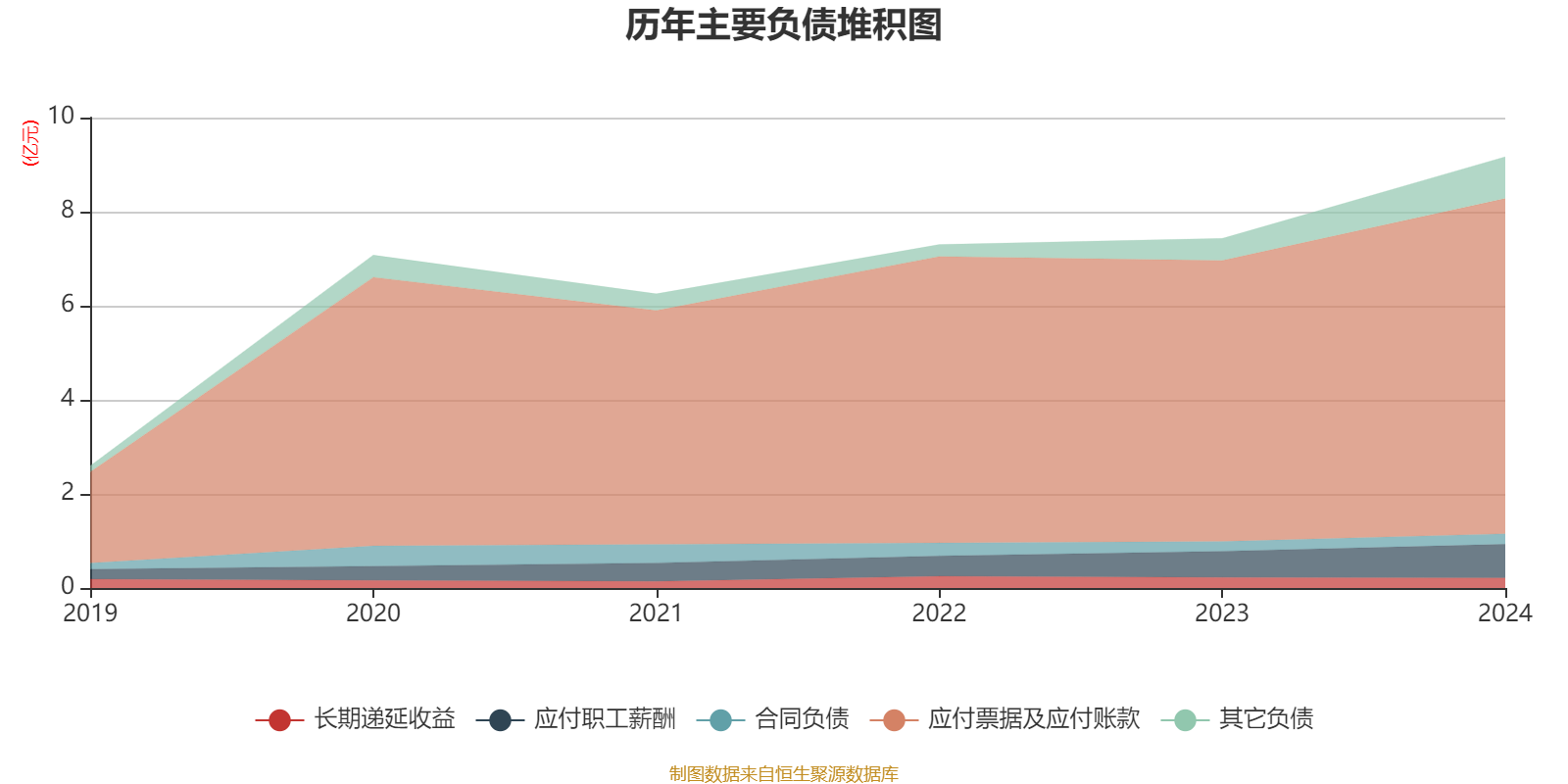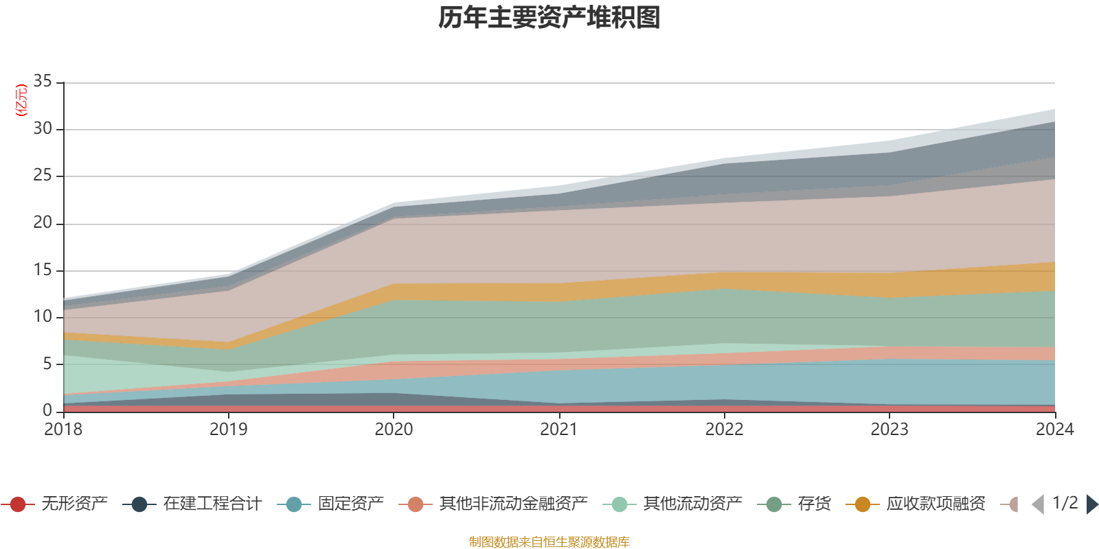 负债重大变化方面,截至2024年末,公司应付票据及应付账款较上年末增加19.3%,占公司总资产比重上升1.42个百分点;其他应付款(含利息和股利)较上年末增加845.14%,占公司总资产比重上升0.76个百分点;短期借款较上年末增加64.97%,占公司总资产比重上升0.33个百分点;应付职工薪酬较上年末增加28.57%,占公司总资产比重上升0.29个百分点。