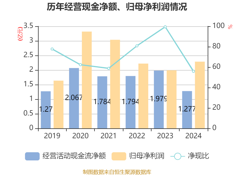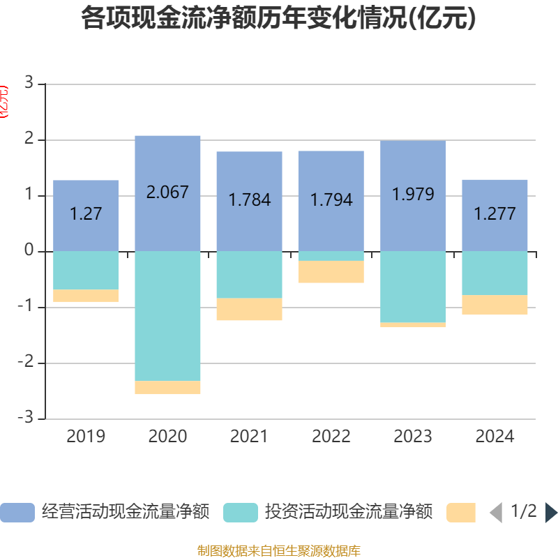 截至2024年,公司经营活动现金流净额为1.28亿元,同比下降35.47%;筹资活动现金流净额-3484.26万元,同比减少2683.38万元;投资活动现金流净额-7892.31万元,上年同期为-1.28亿元。