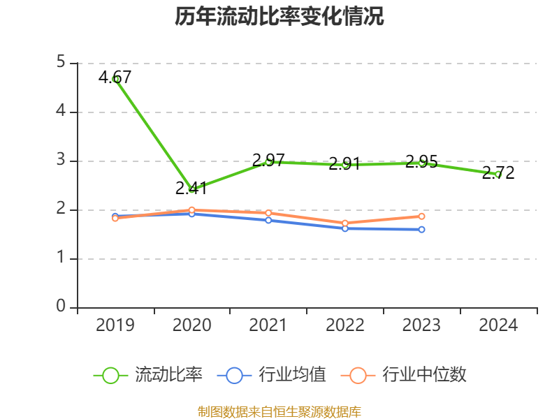 2024年,公司流动比率为2.72,速动比率为2.05。
