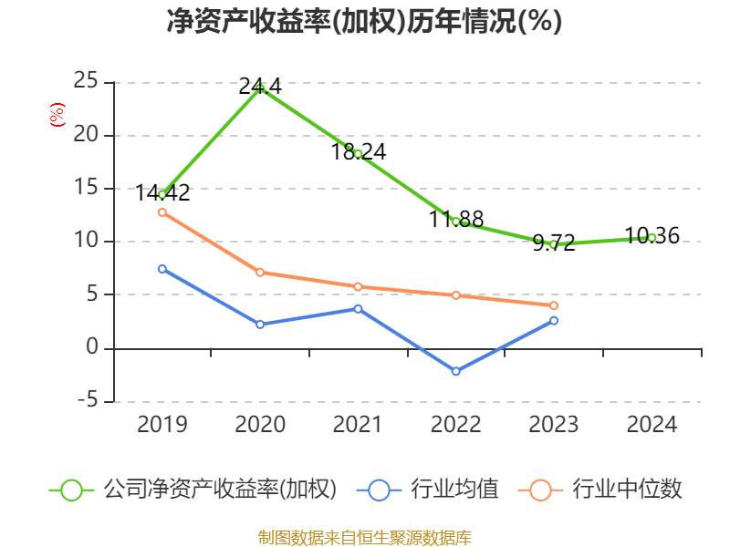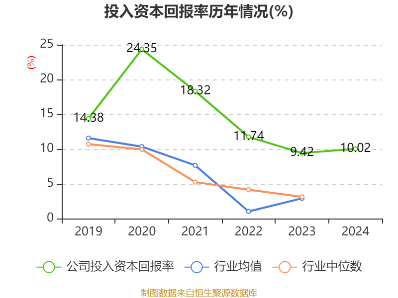 数据显示,2024年公司加权平均净资产收益率为10.36%,较上年同期上升0.64个百分点。公司2024年投入资本回报率为10.02%,较上年同期上升0.6个百分点。