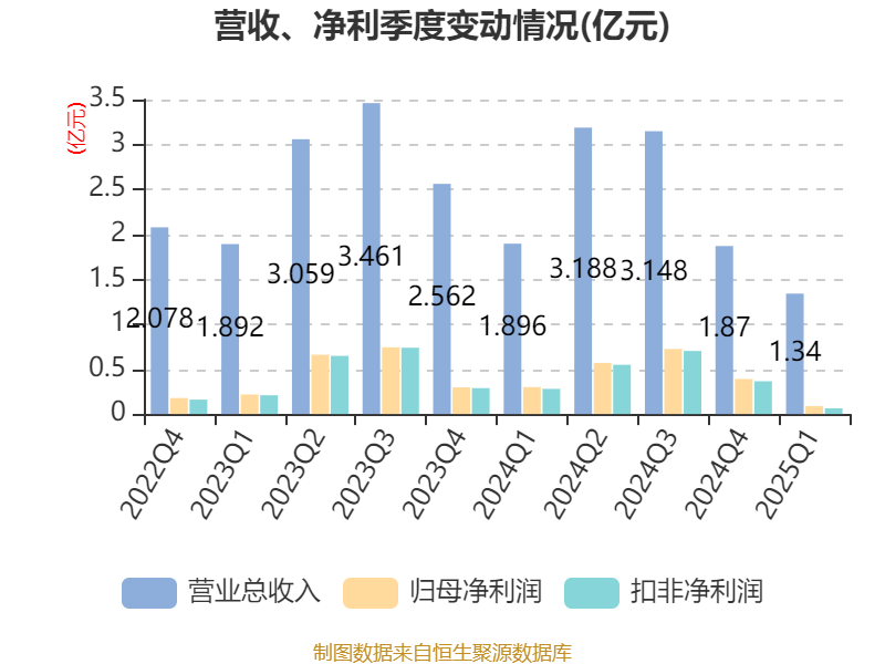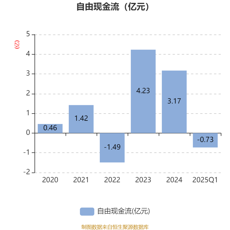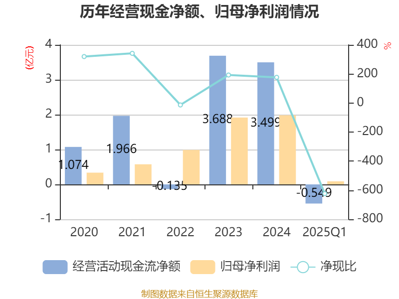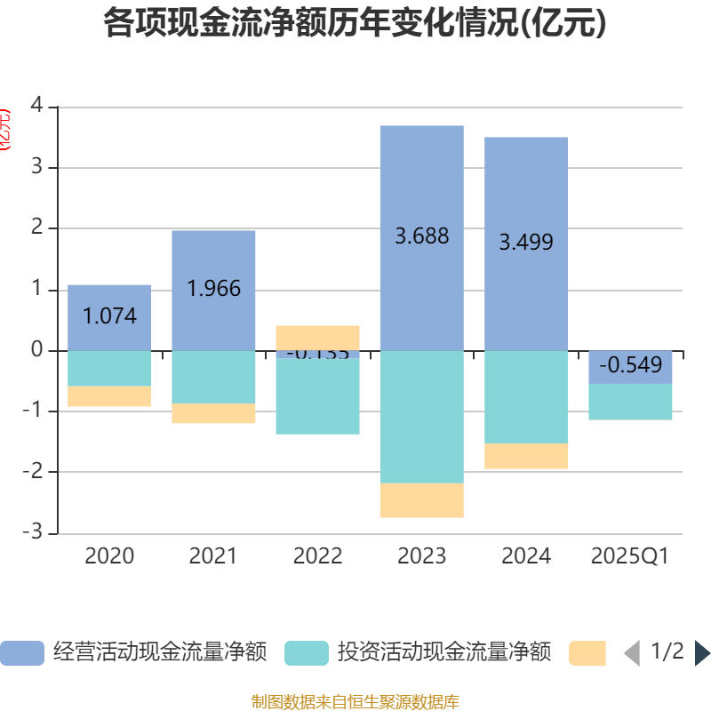 截至2025年一季度末,公司经营活动现金流净额为-5485.3万元,同比减少1856.14万元;筹资活动现金流净额-49.87万元,同比减少71.97万元;投资活动现金流净额-5919.71万元,上年同期为-441.87万元。