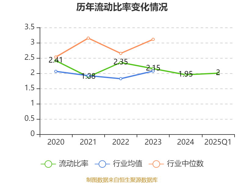 2025年第一季度,公司流动比率为2,速动比率为1.79。