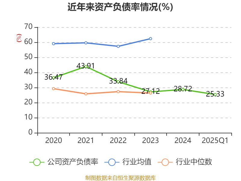 负债重大变化方面,截至2025年一季度末,公司应付票据及应付账款较上年末减少14.54%,占公司总资产比重下降2.71个百分点;应付职工薪酬较上年末减少60.34%,占公司总资产比重下降0.68个百分点;合同负债较上年末增加25.67%,占公司总资产比重上升0.32个百分点;应交税费较上年末减少31.74%,占公司总资产比重下降0.29个百分点。