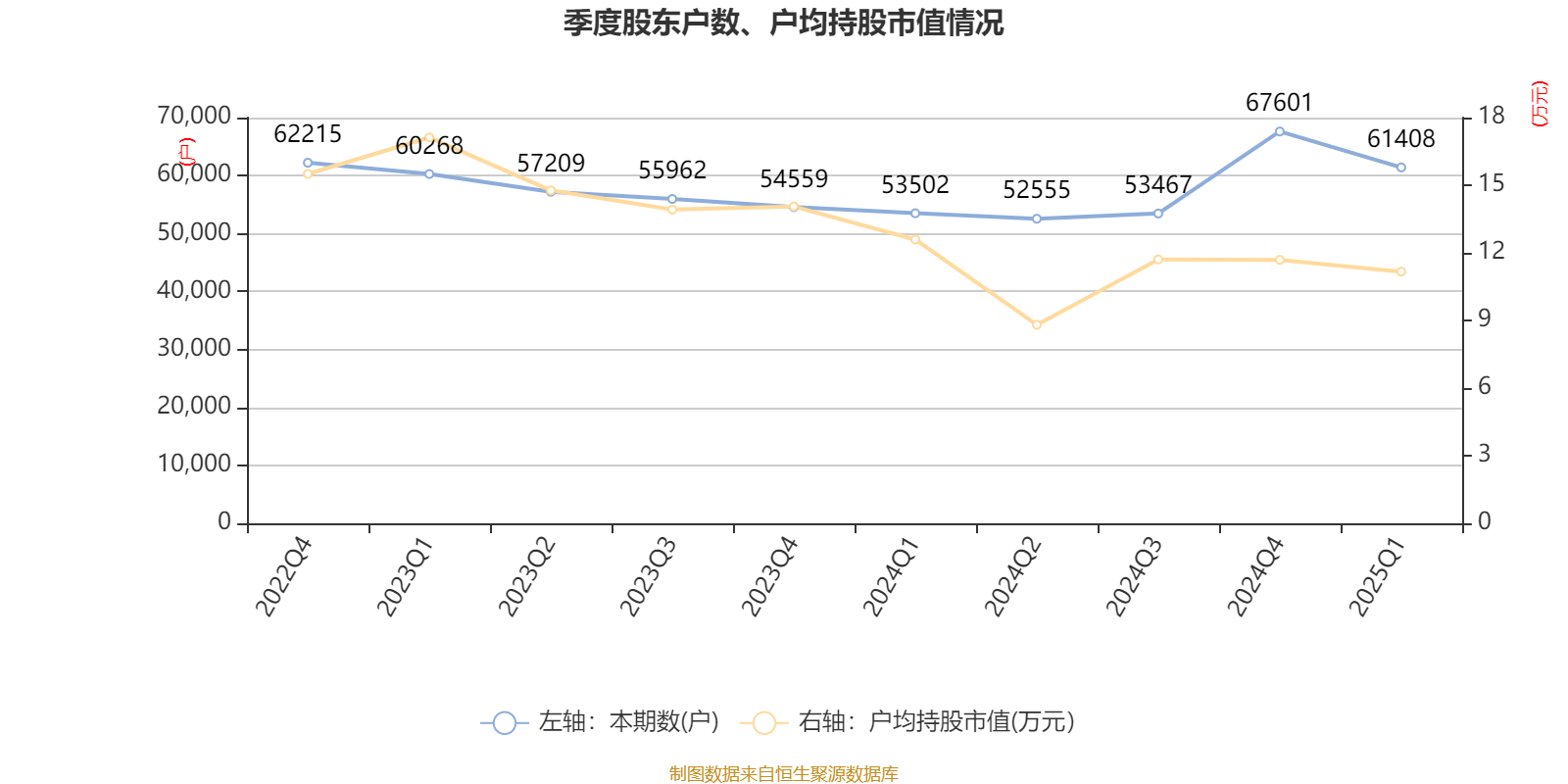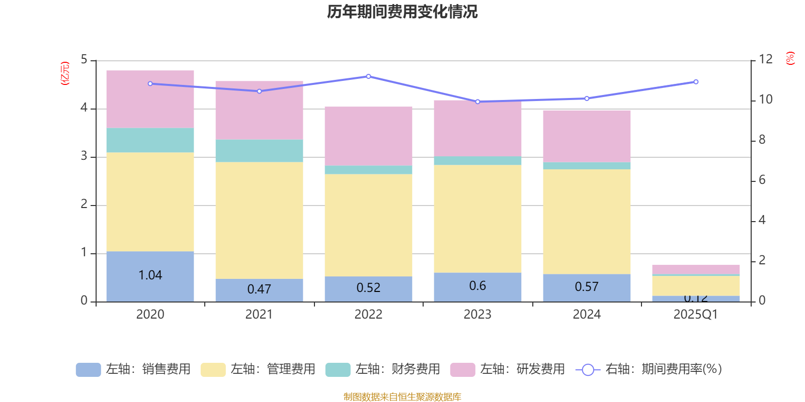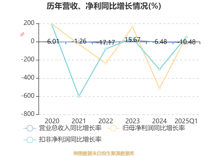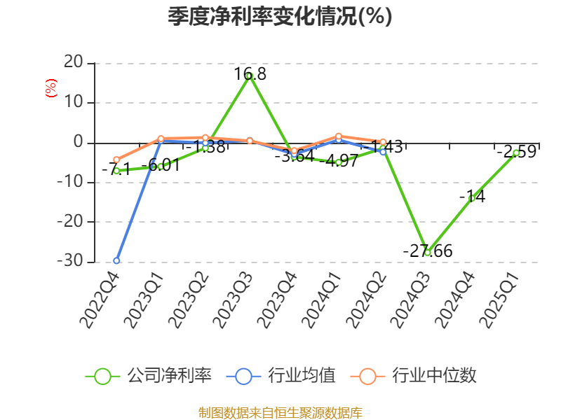 截至2025年一季度末,公司经营活动现金流净额为-2.82亿元,同比增加6851.79万元;筹资活动现金流净额-5520.4万元,同比减少1.27亿元;投资活动现金流净额-560.87万元,上年同期为-407.07万元。