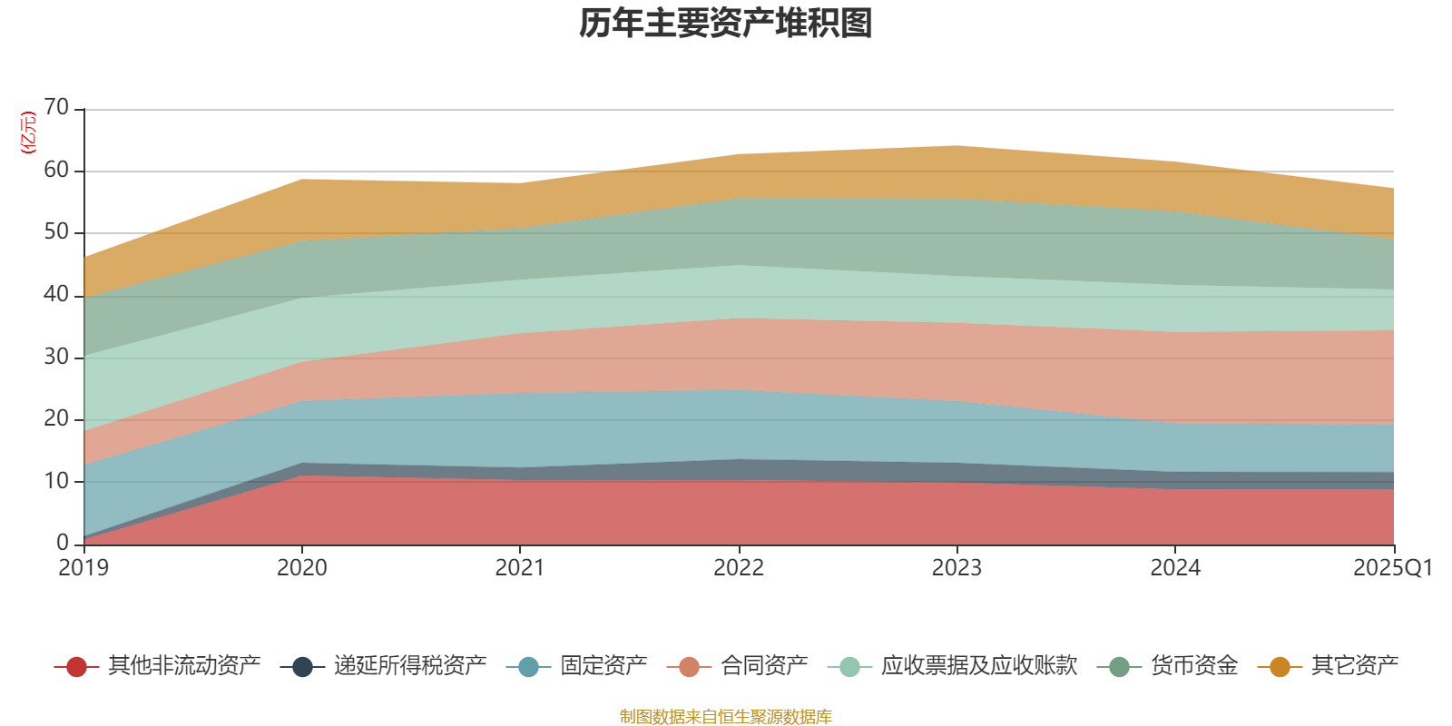资产重大变化方面,截至2025年一季度末,公司货币资金较上年末减少31.63%,占公司总资产比重下降5.1个百分点;合同资产较上年末增加2.91%,占公司总资产比重上升2.52个百分点;其他非流动资产较上年末减少0.16%,占公司总资产比重上升1.05个百分点;应收票据及应收账款较上年末减少12.84%,占公司总资产比重下降0.78个百分点。