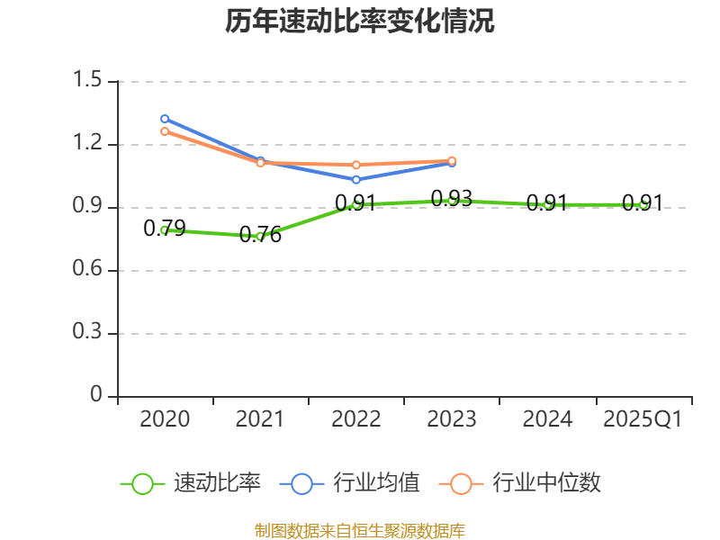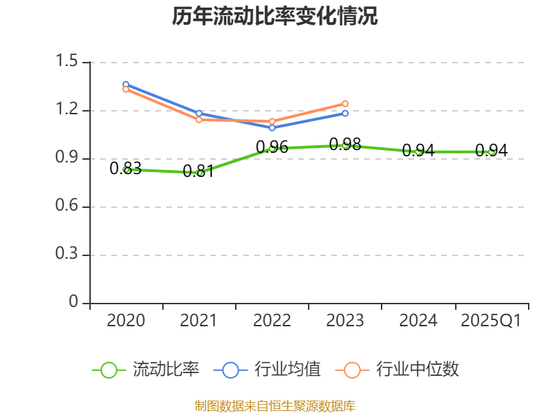 2025年第一季度,公司流动比率为0.94,速动比率为0.91。