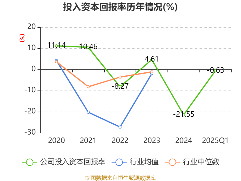 盈利能力方面, 2025年一季度公司加权平均净资产收益率为-1.37%,同比上升0.68个百分点。公司2025年第一季度投入资本回报率为-0.63%,较上年同期上升1.3个百分点。