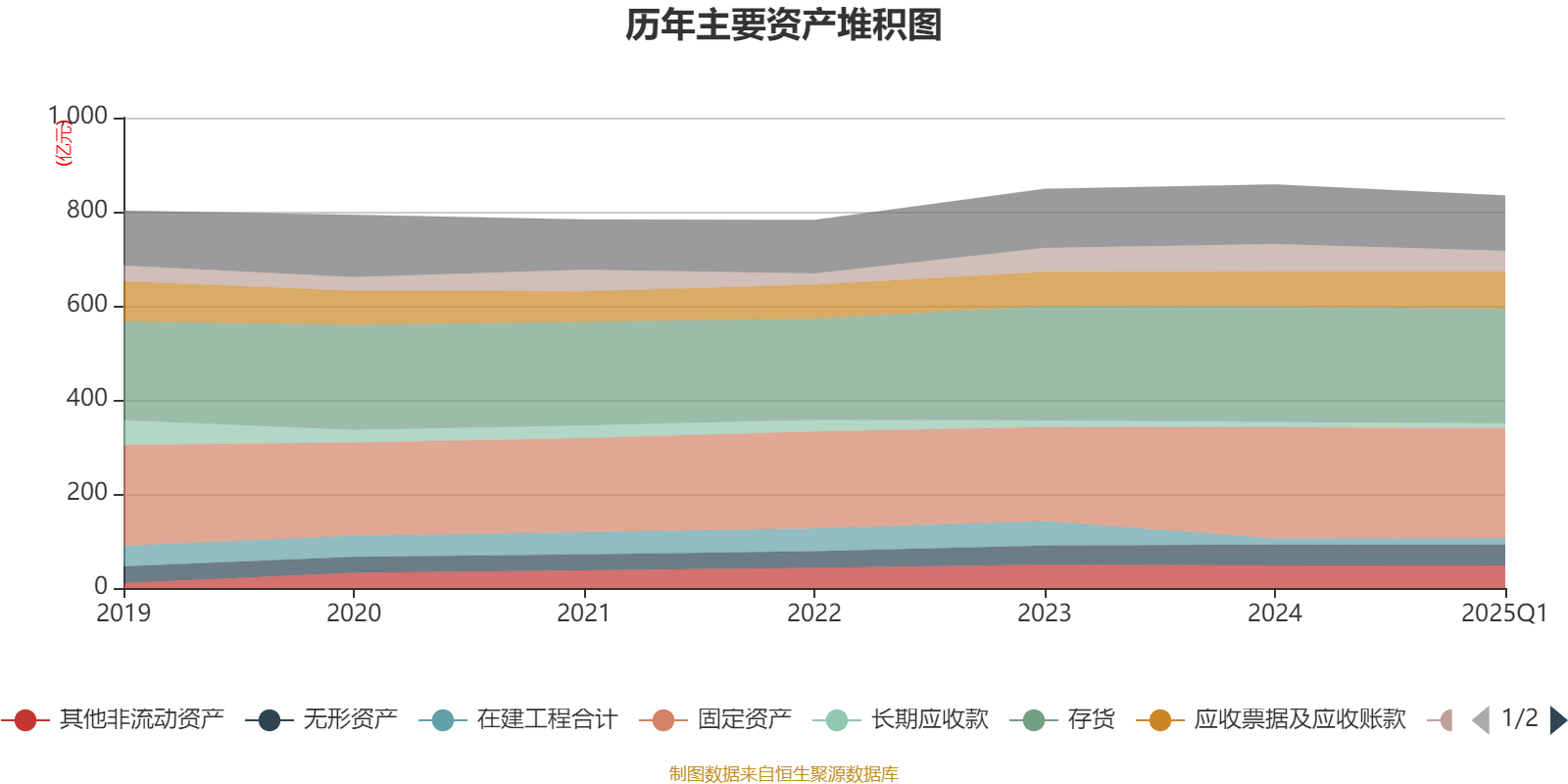 资产重大变化方面,截至2025年一季度末,公司货币资金较上年末减少25.02%,占公司总资产比重下降1.57个百分点;应收票据及应收账款较上年末增加6.56%,占公司总资产比重上升0.83个百分点;存货较上年末减少0.76%,占公司总资产比重上升0.58个百分点;其他流动资产较上年末减少47.62%,占公司总资产比重下降0.46个百分点。