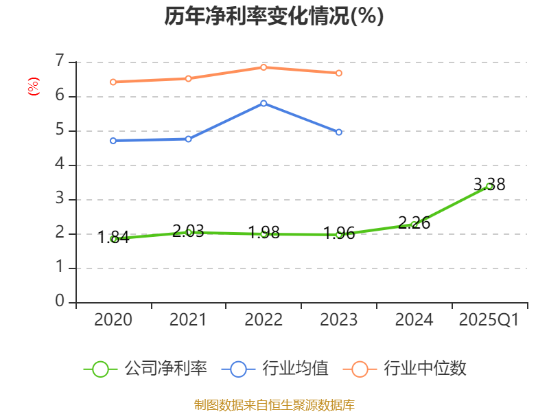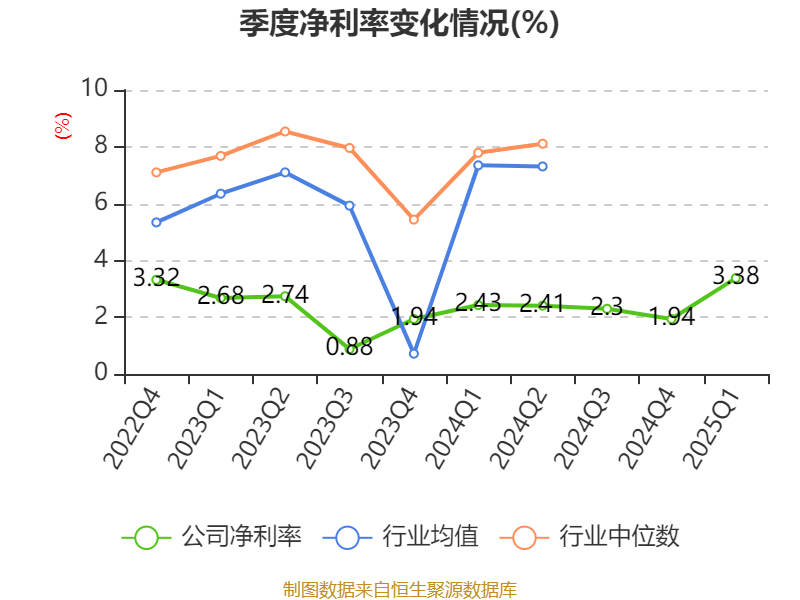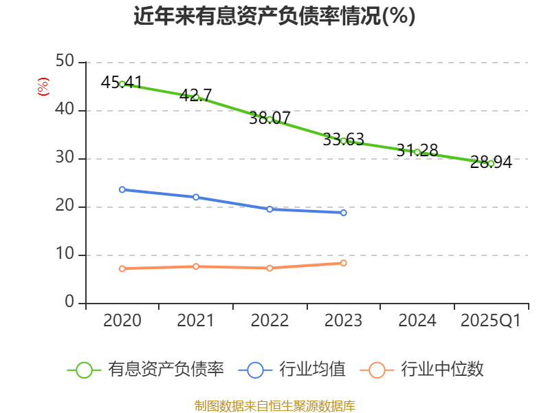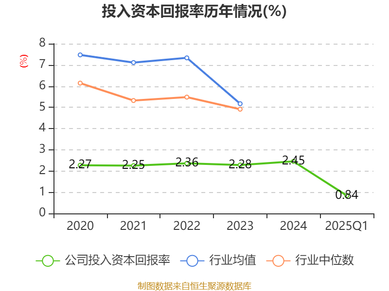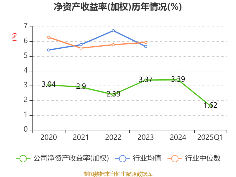盈利能力方面, 2025年一季度公司加权平均净资产收益率为1.62%,同比上升0.54个百分点。公司2025年第一季度投入资本回报率为0.84%,较上年同期上升0.11个百分点。