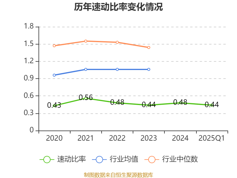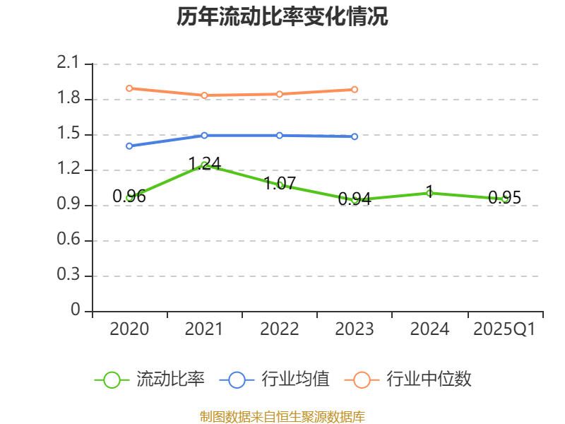 2025年第一季度,公司流动比率为0.95,速动比率为0.44。