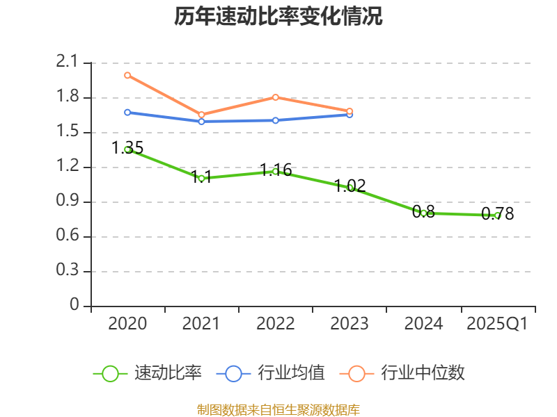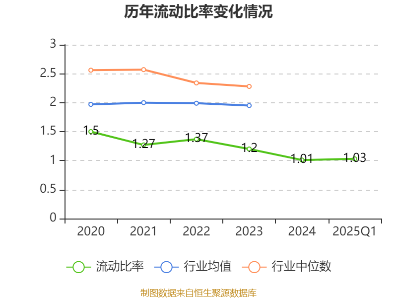 2025年第一季度,公司流动比率为1.03,速动比率为0.78。