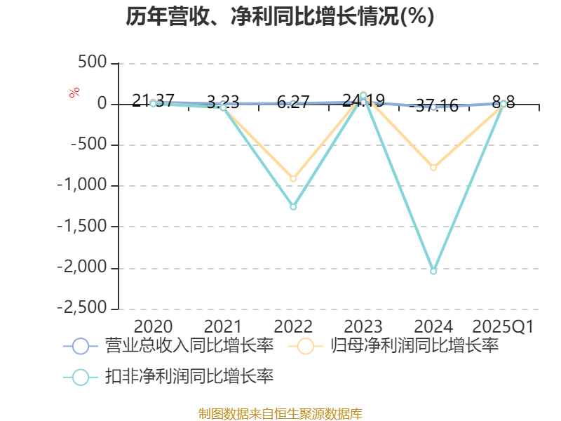 负债重大变化方面,截至2025年一季度末,公司应付票据及应付账款较上年末减少14.99%,占公司总资产比重下降3.39个百分点;短期借款较上年末增加9.44%,占公司总资产比重上升2.08个百分点;长期借款较上年末增加9.19%,占公司总资产比重上升1.83个百分点;应交税费较上年末减少88.52%,占公司总资产比重下降0.35个百分点。