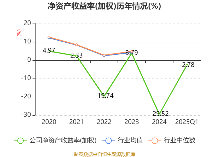 盈利能力方面, 2025年一季度公司加权平均净资产收益率为-2.78%,同比下降0.31个百分点。公司2025年第一季度投入资本回报率为-0.53%,较上年同期下降0.12个百分点。