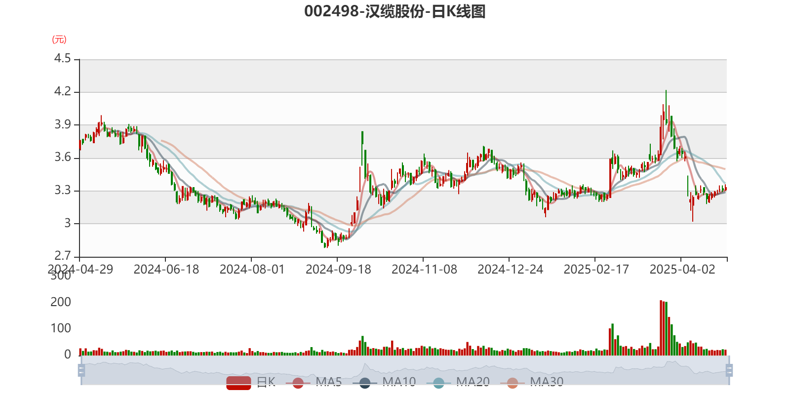 以4月25日收盘价计算,汉缆股份目前市盈率(TTM)约为18.56倍,市净率(LF)约1.32倍,市销率(TTM)约1.19倍。