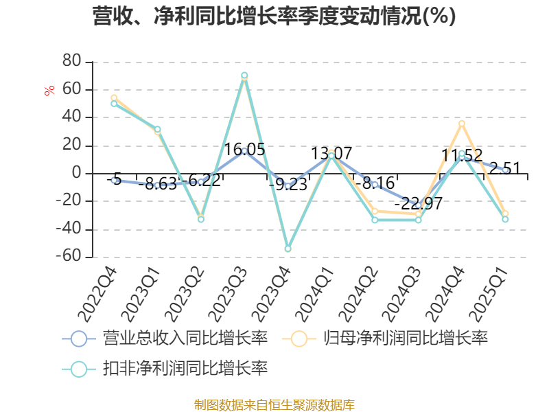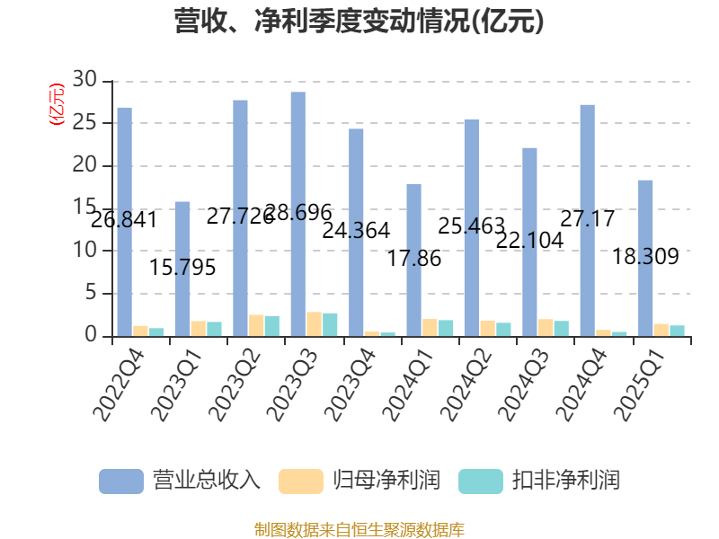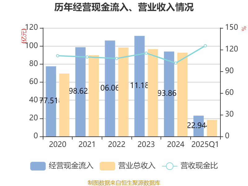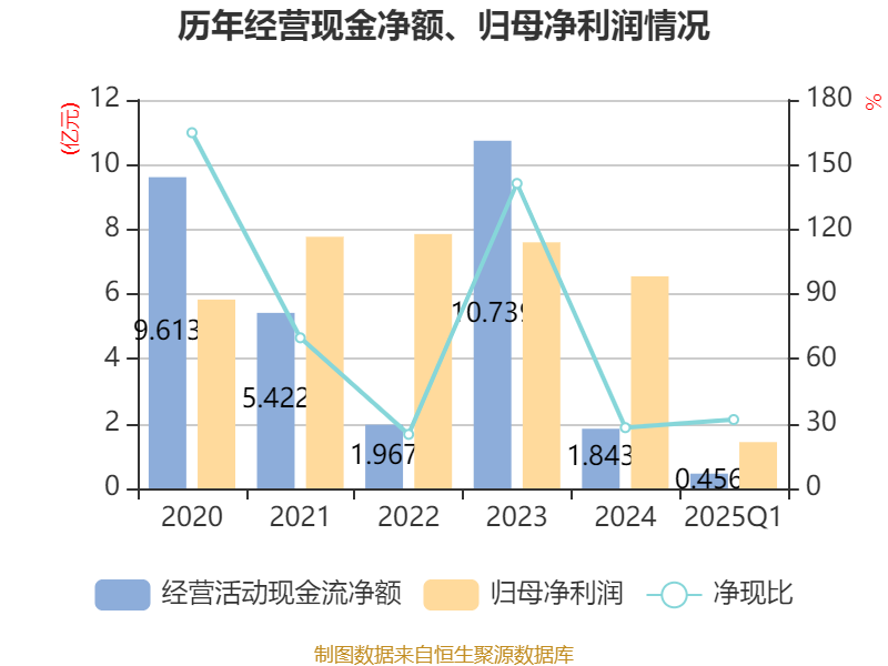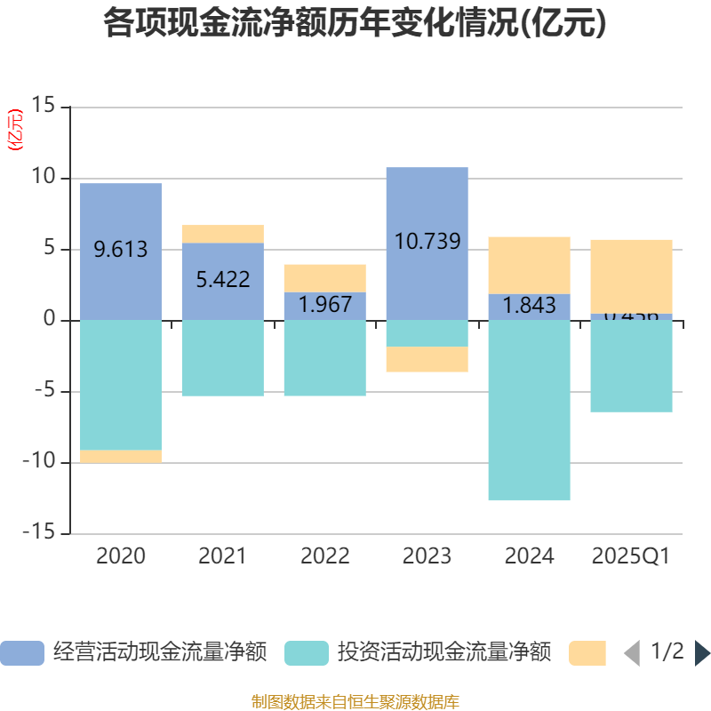 截至2025年一季度末,公司经营活动现金流净额为4560.43万元,同比增加2.28亿元;筹资活动现金流净额5.18亿元,同比增加6.14亿元;投资活动现金流净额-6.49亿元,上年同期为-5.79亿元。